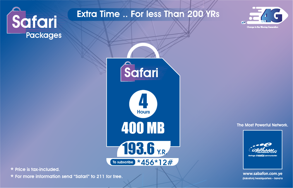 Enjoy the affordable 4G with Safari 4 hours package: